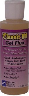 Classic 100 Gel Flux. A truly odorless, non-smoking flux for copper foil; lead and zinc came. Works with traditional and lead-free solders. Convenient applicator bottle top. 8 oz.