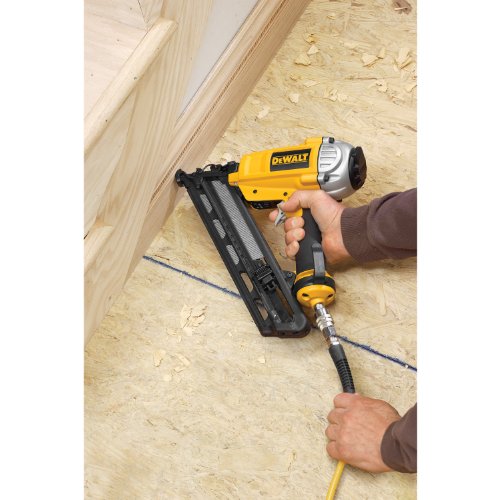 Innovative DEWALT technology allows you to use the D51276K with or without oil, offering you the versatility to complete a wide range of jobs quickly and efficiently. With its operating pressure of 70-120 PSI, this versatile nailer takes one- to 2-1/2-inch, 34-degree, 15 gauge straight collated nails, and provides the freedom of tool-less perks including a 360 degree rotating exhaust cap, nail depth adjustment, and a front opening that releases any jams for smooth, reliable performance. The D51276K comes with a carrying case, 1000 two-inch finish nails, a low-profile and no-mar pad, a pre-installed sequential action trigger, and a trigger lock off.