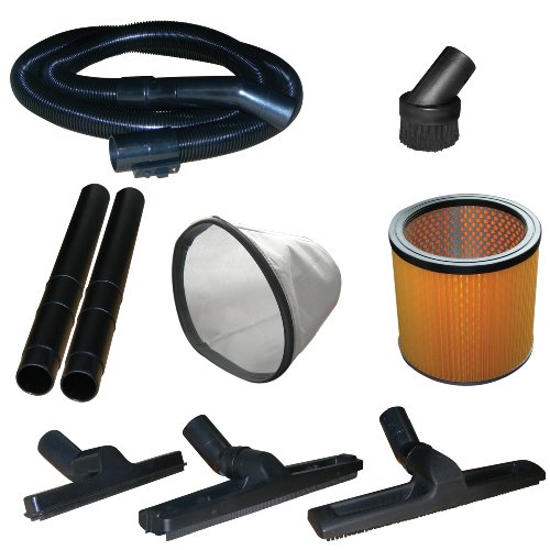 General International 10-300 M1 10 Gallon Vacuum Cleaner, Wet/ DryFeatures:* Sound hood for quiet operation* Wet/dry operation* Sealed, water resistant switch cover* 2 stage air filtration* Powerful 2 speed motor* Rated for heavy-duty maintenance & janitorial use* Accessory tray includedSpecifications:* Capacity: 10-Gallons* Voltage: 110 V* Air Movement: 92 CFM* Suction (water lift): 72-Inches (MAX.)* Hose Length: 6-Feet (2 m)* Sound Rating: 75 TO 80 dB* Motor: 1-1/2 HP (HI: 10 A / LOW: 7 A)* Weight: 40-Pounds (18 kg)What's In The Box:* General International 10-300 M1 10 Gallon Wet/ Dry Vacuum* Round brush nozzle (#10300-11B)* Wet nozzle (#10300-35B)* Flexible 6' hose with cuved end - pipe (#10-306)* 2 piece extension wand (#10-309)* Crevice nozzle (#10-310)* 12” wide brush nozzle (#10-314)* Professional wet nozzle (#10-323)* Canister filter (#10-332)* Cloth filter (#10-334)